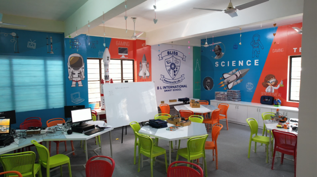 The STEM Lab at BL International Smart School offers students a hands on, future focused learning environment where science, technology, engineering, and mathematics come alive. Designed to spark curiosity and problem solving skills, the lab encourages students to explore real world concepts through experiments, robotics, coding, model building, and innovative projects. It nurtures creativity, logical thinking, and teamwork while helping learners connect classroom knowledge with practical application. By engaging in inquiry based activities, students develop confidence, critical thinking, and the skills needed to thrive in a rapidly evolving technological world.